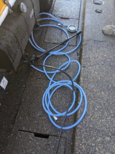 連休中だったので洗管屋さんはお休みなので私の持ってる(頂き物)に高圧ホースを繋げたら使えたのでこれを管に突っ込んでぶっ飛ばしまくりました。水圧はあんまり強くしてないです。管に穴開けたってなったらえらい騒ぎになります。
